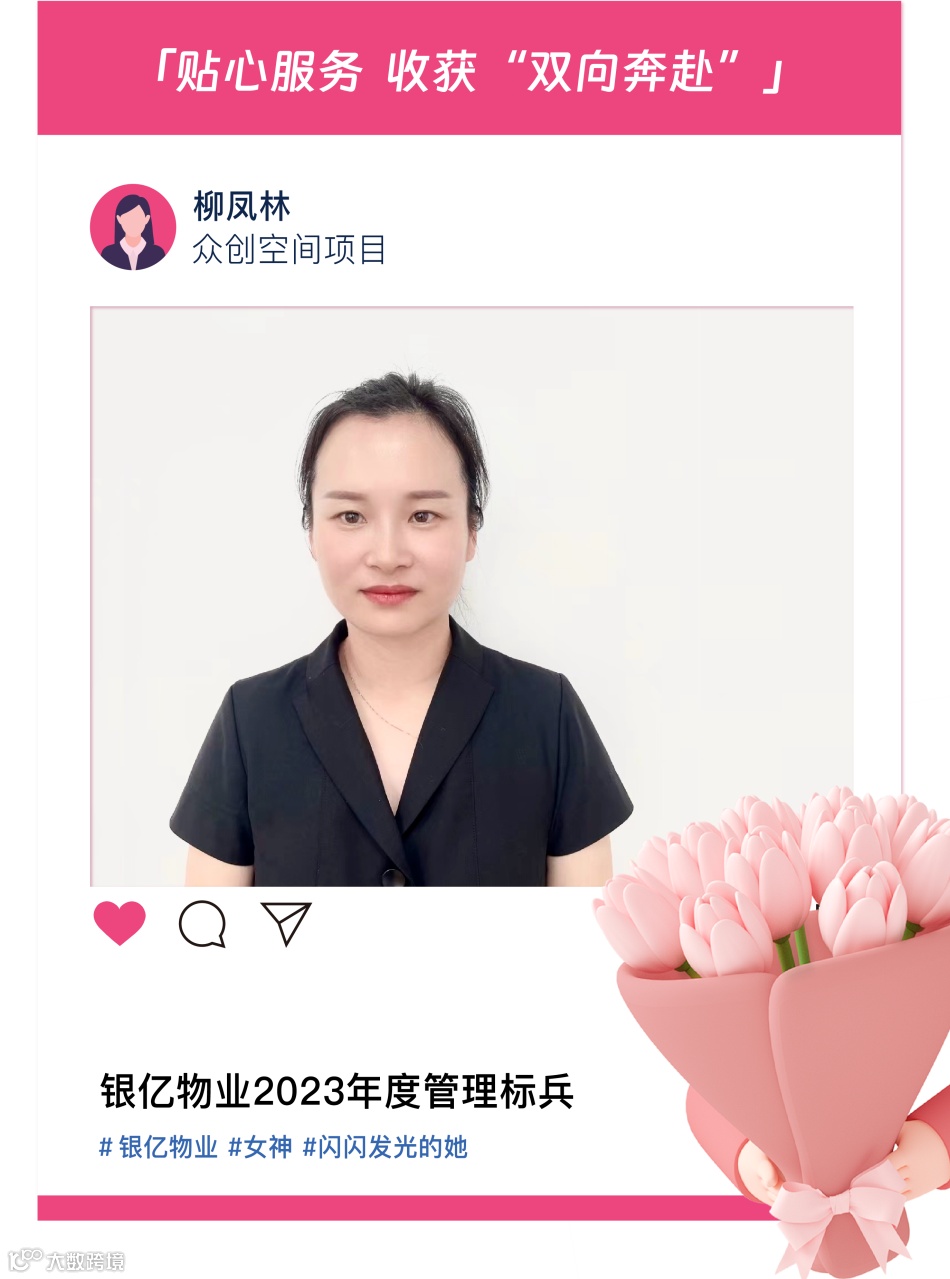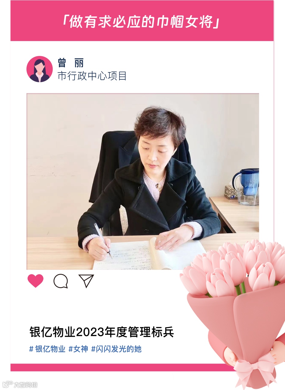 她是温柔贤惠的好妻子,如今,是岗位上的标兵,是工作中的女强人,是同事的好领导,是领导的得力助手,是被业主称赞的好物业。面对项目人员紧缺的困境,主动补位,用柔弱的肩膀,肩负起一次次的重任,用对物业工作的一腔热情,换来了业主的认可。