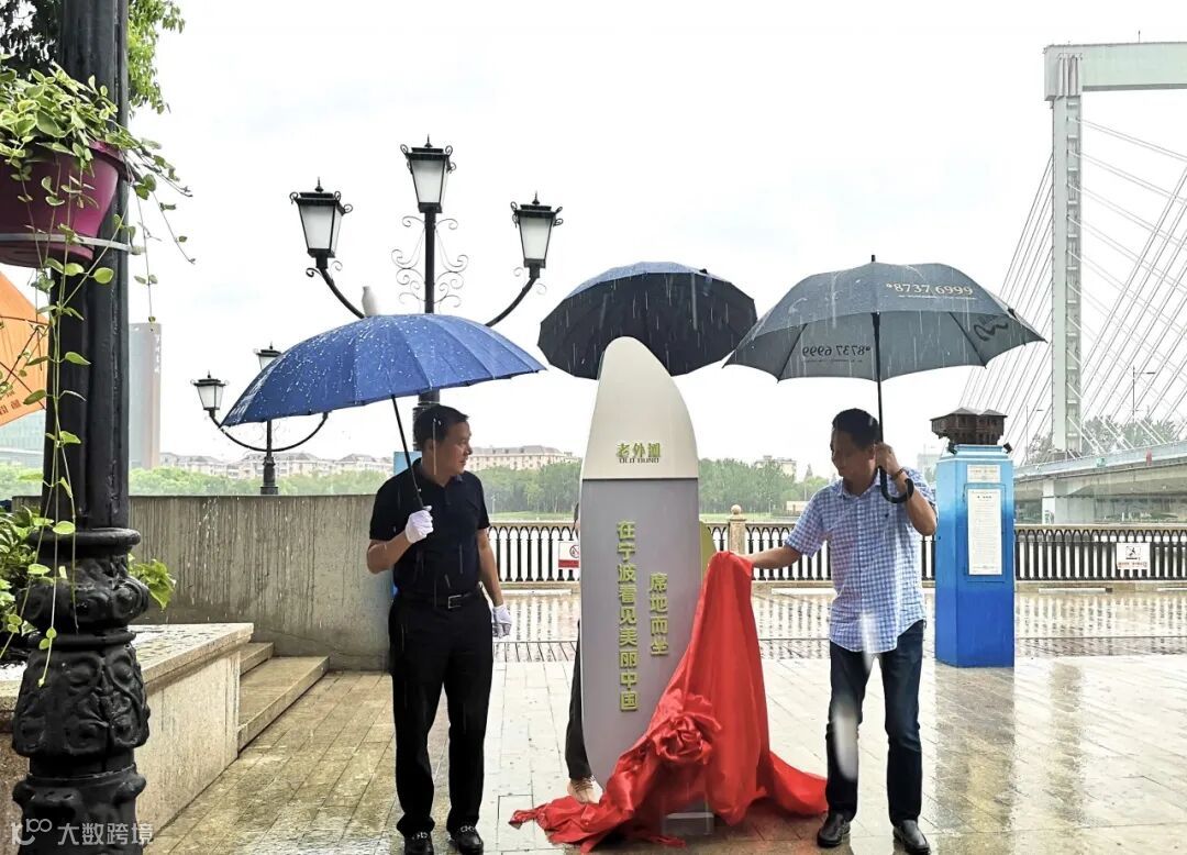 ▲图中,宁波市政府副秘书长、市综合行政执法局局长郑一平和江北区综合行政执法局局长翁卫正在为老外滩“席地而坐”示范区域揭牌。