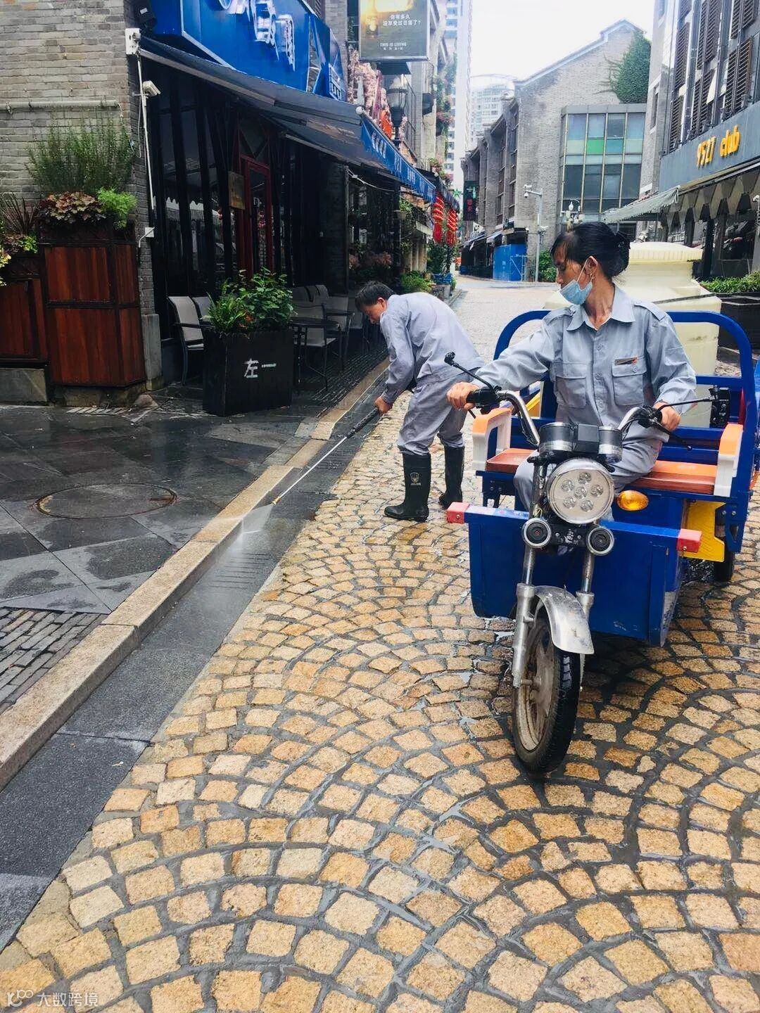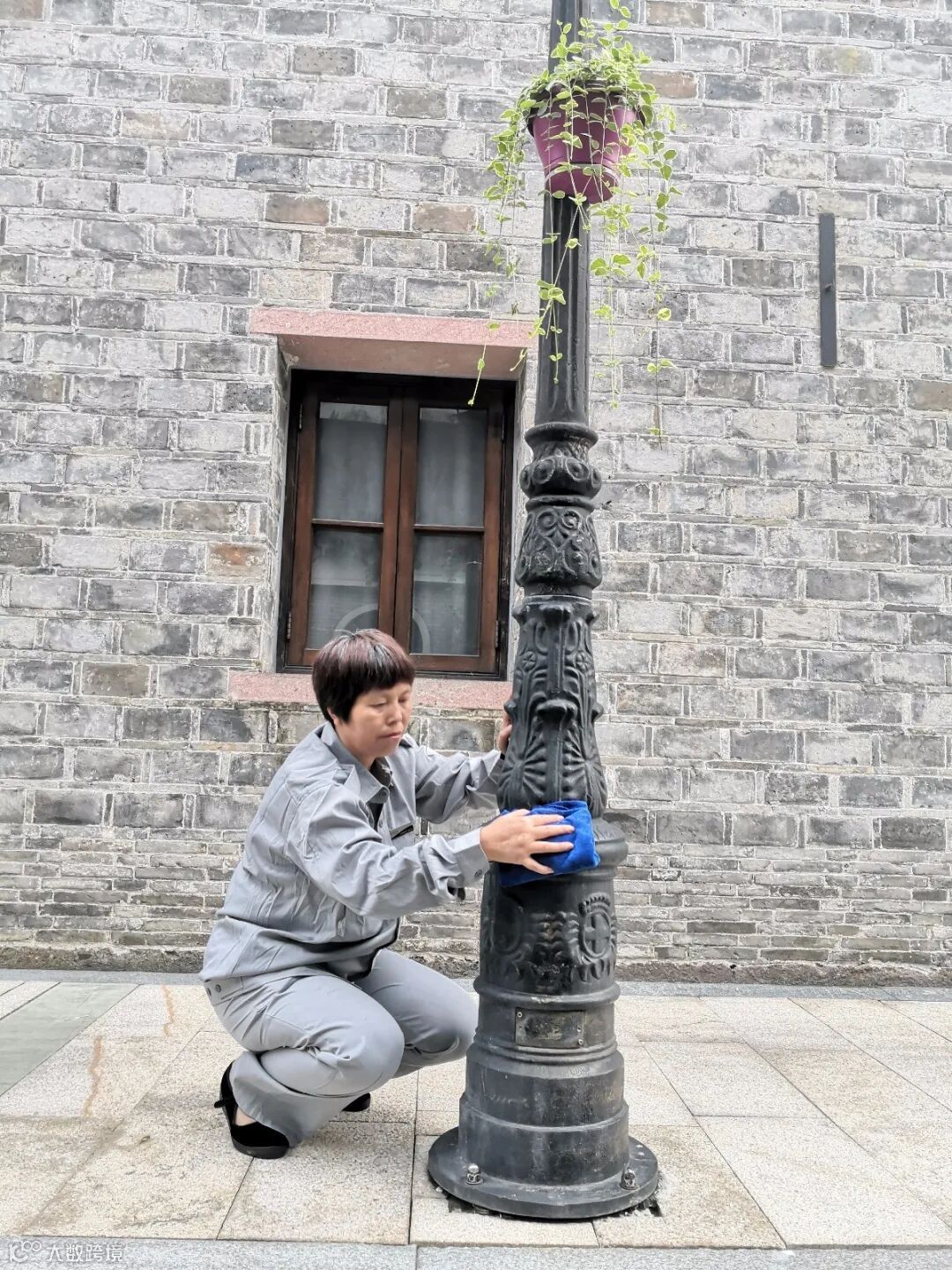 ▲保洁员们用巧手助力街区提亮“肤色”。