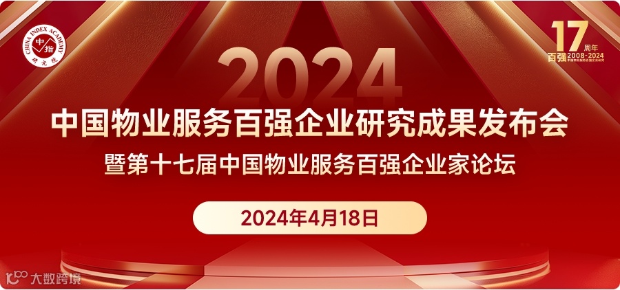 2024年4月18日,由北京中指信息技术研究院主办,北京中指信息技术研究院中国房地产TOP10研究组、中国物业服务指数系统承办的“2024中国物业服务百强企业研究成果发布会暨第十七届中国物业服务百强企业家论坛”在北京隆重召开。