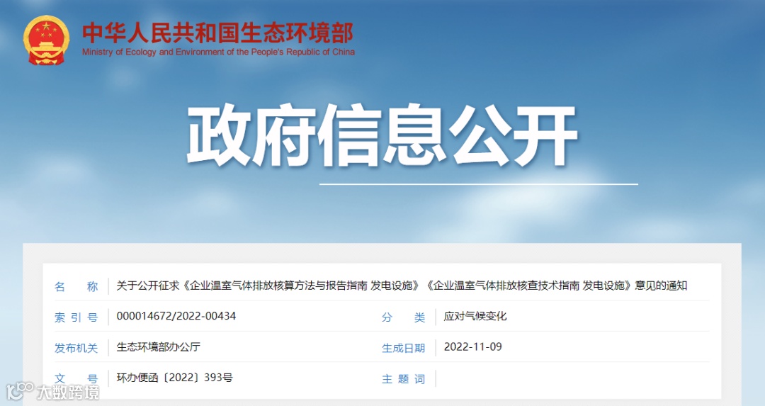 为规范发电行业重点排放单位碳排放核算报告核查工作,提高碳排放数据质量,完善全国碳排放权交易市场数据质量管理长效机制,我部组织编制形成了《企业温室气体排放核算方法与报告指南 发电设施》《企业温室气体排放核查技术指南 发电设施》,现公开征求意见(征求意见稿及其编制说明等材料可登录我部网站http://www.mee.gov.cn/ “意见征集”栏目检索查阅)。