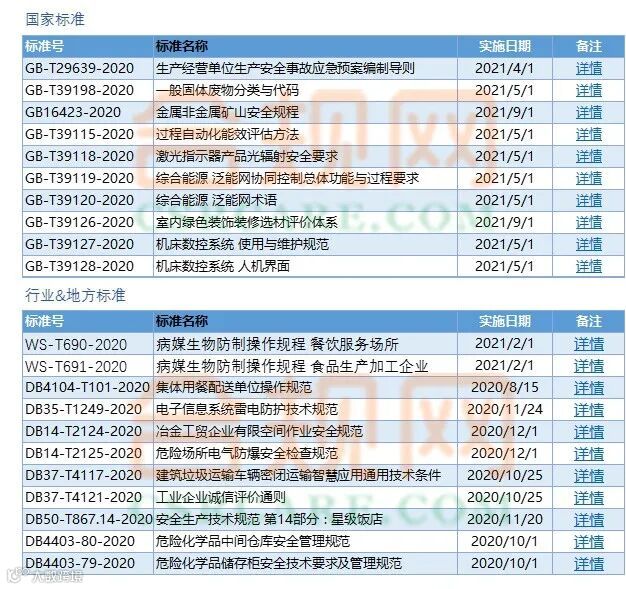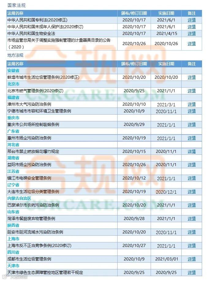 1、完整清单请登录合规网(www.csrcare.com)搜索关键词“2020年10月EHS法规标准清单”获取;