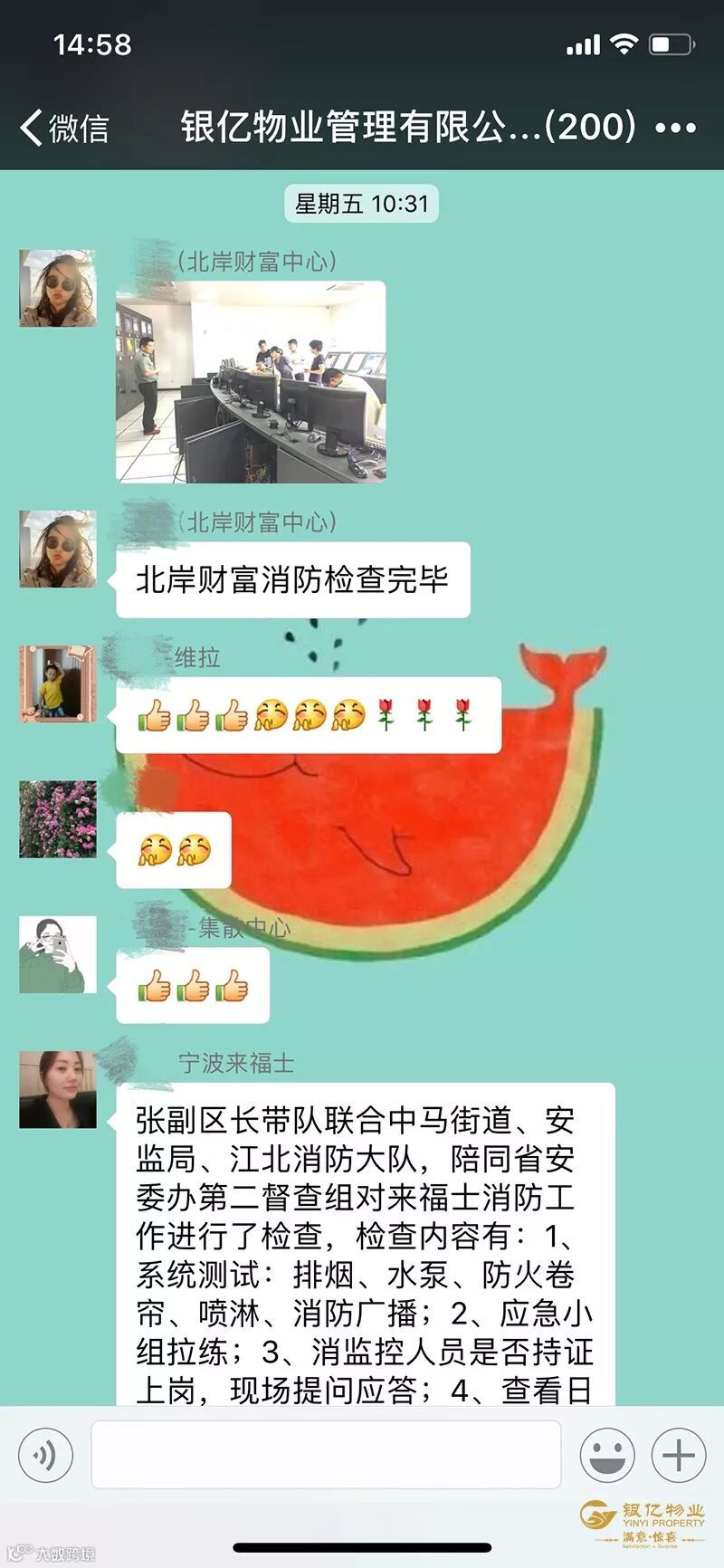 培训期间,鄞州区、江北区各项目适逢省消防大队检查。各项目积极应对,留守在项目的同事频频传来好消息,一一顺利通过消防检查。你安心培训学习,我沉着面对检查。银亿物业,众志成城,无论台前幕后,工作还是学习,都坚定信念,努力为业主们营造舒适的工作、生活环境。正是因为这股信念,把广大银亿人凝聚起来,在短短三天,同时圆满完成了两件大事。