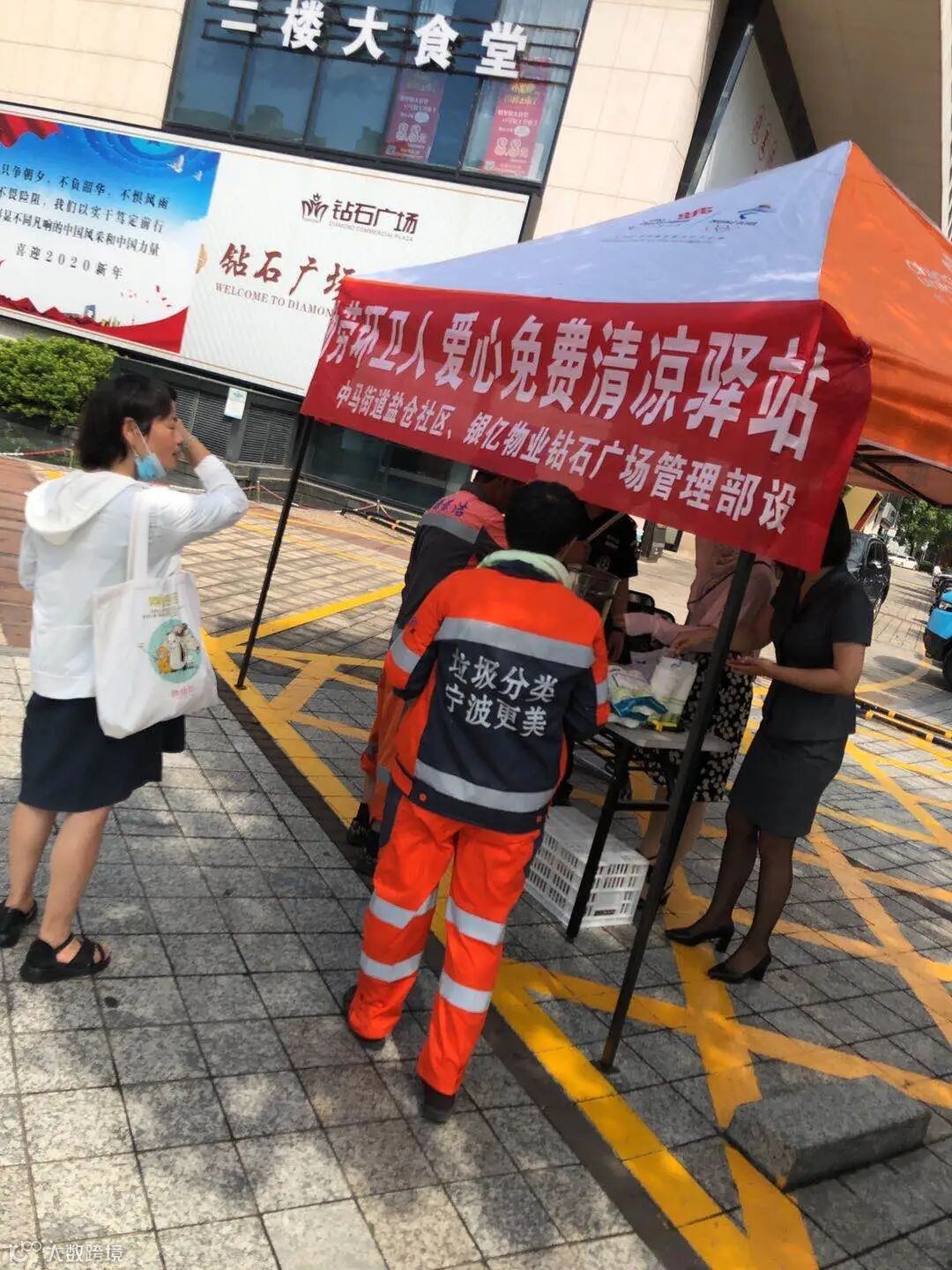 时近盛夏,酷暑难耐,然而高温作业人依旧坚守在各自的岗位上,为甬城创建名城名都添砖加瓦。为方便这些高温环境作业者在酷暑天能够及时喝水解暑,为他们提供一个歇脚、喝水的地方,给予他们炎炎夏日的关怀与清凉,6月15日,银亿物业钻石商业广场管理部会同中马街道盐仓社区设立了“勤劳环卫人爱心免费清凉驿站”,向过路的环卫工提供免费赠饮,借此方式表达对他们的感谢和尊敬,让这些城市美容师们真切感受到来自物业与社区的关怀。