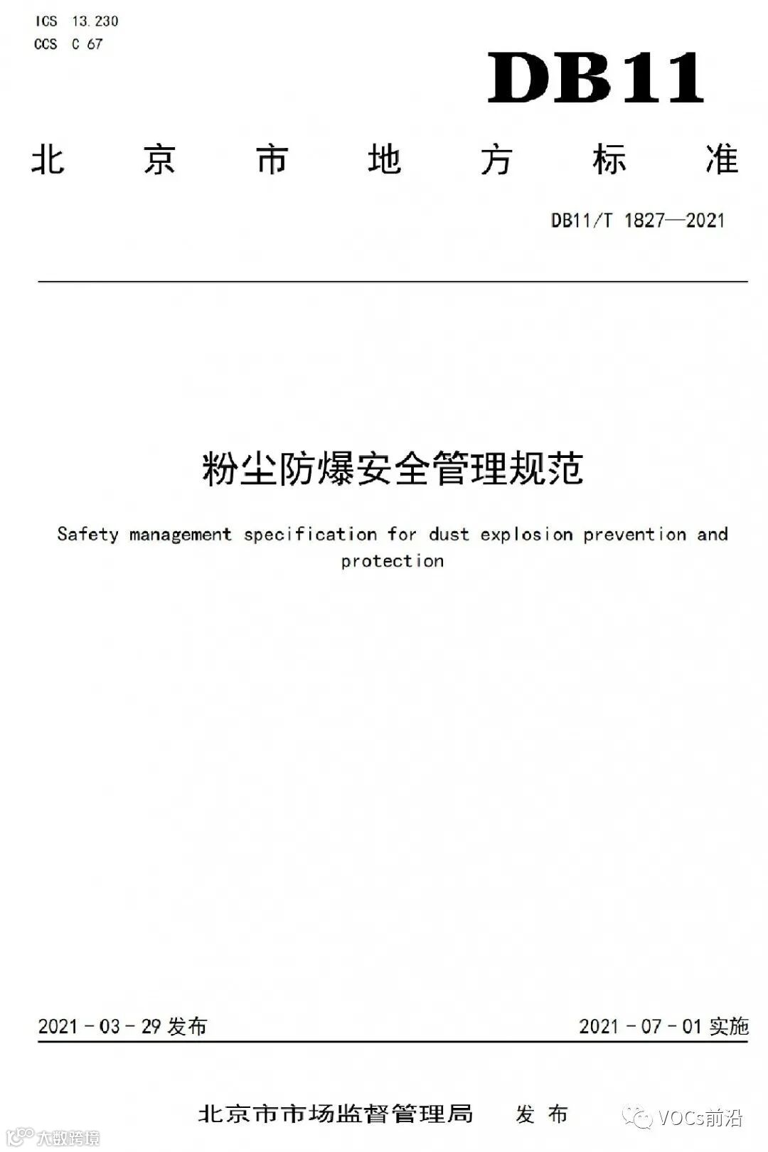 近日,北京市市场监督管理局发布地方标准《粉尘防爆安全管理规范》(DB11/T1827-2021),该标准自7月1日开始实施。标准内容详见下方。