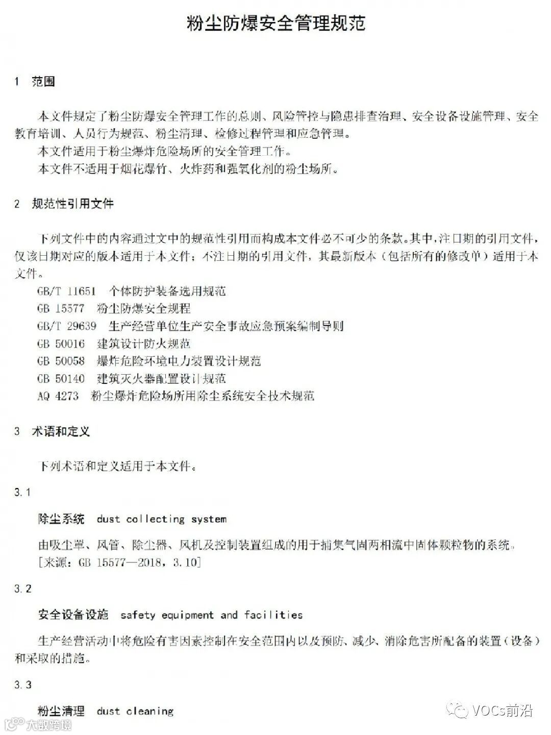 本文件规定了粉尘防爆安全管理工作的总则、风险管控与隐患排查治理、安全设备设施管理、安全教育培训、人员行为规范、粉尘清理、检修过程管理和应急管理。