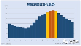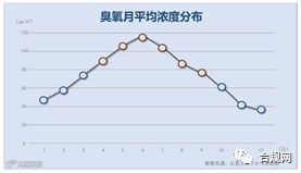 结合下面这两张浓度的变化图,可以看出在夏季的午后,臭氧的浓度会达到全年的最大值,造成这种现象的原因在于臭氧的生成受到了温度、湿度、日照以及风速等气象因素的影响。一般来说,温度越高,光照越强,湿度越小,风速越小,臭氧就越容易产生与聚积,而在一个晴朗的夏季午后,便达到了生成臭氧的最佳条件了。