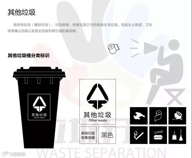 其他垃圾是指除厨余垃圾(餐厨垃圾)、可回收物、有害垃圾以外的生活垃圾。