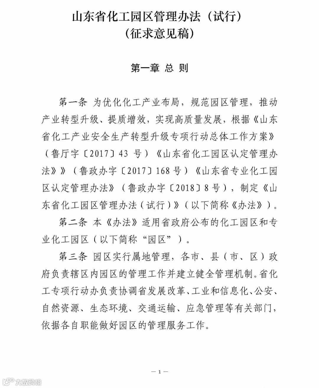 附:山东省化工园区管理办法(试行)(征求意见稿)
