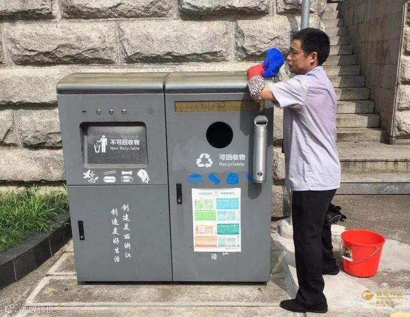 辛勤的保洁员开始了一天的工作。