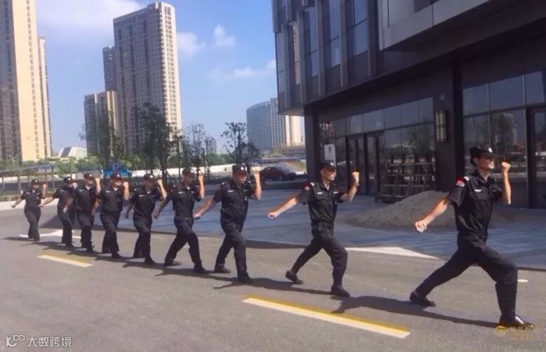 秩序维护员已开始操练。