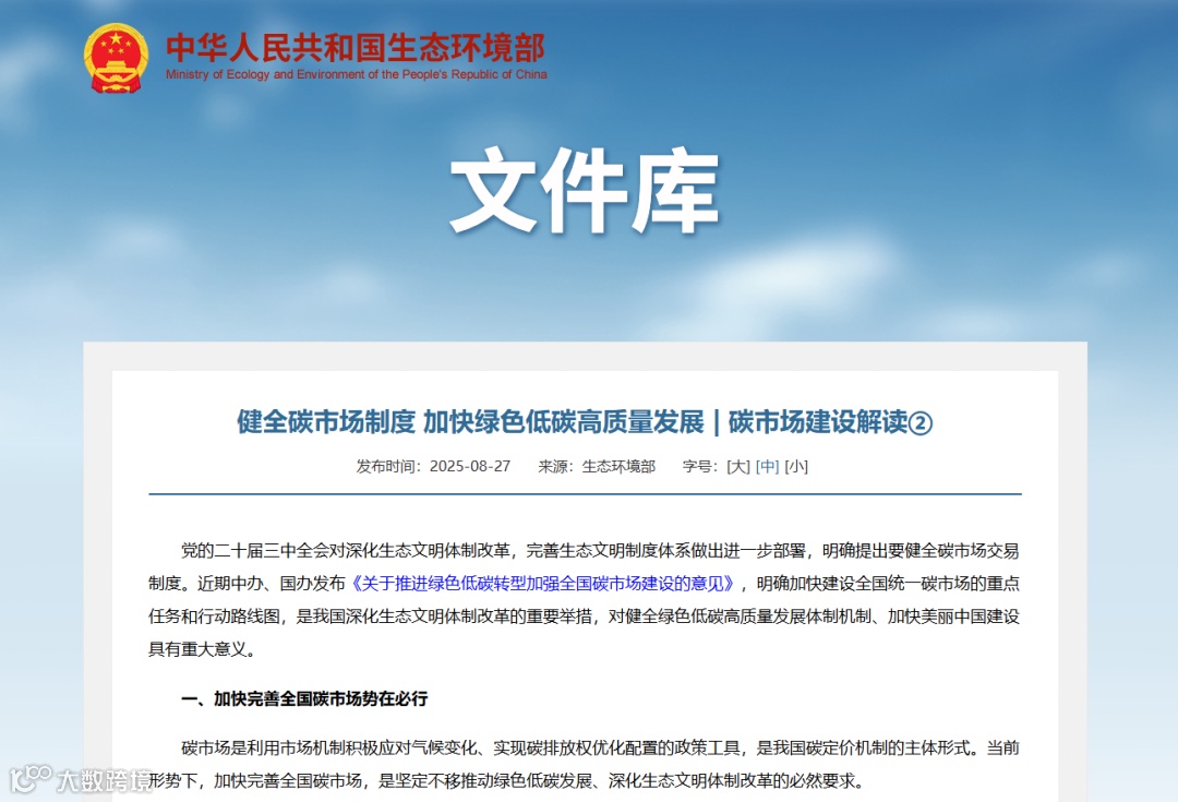 这份重磅文件,是对党的二十大三中全会关于“深化生态文明体制改革、健全碳市场交易制度”战略部署的具体落实,标志着我国在健全绿色低碳发展体制机制、建设美丽中国的道路上,又迈出了至关重要的一步。