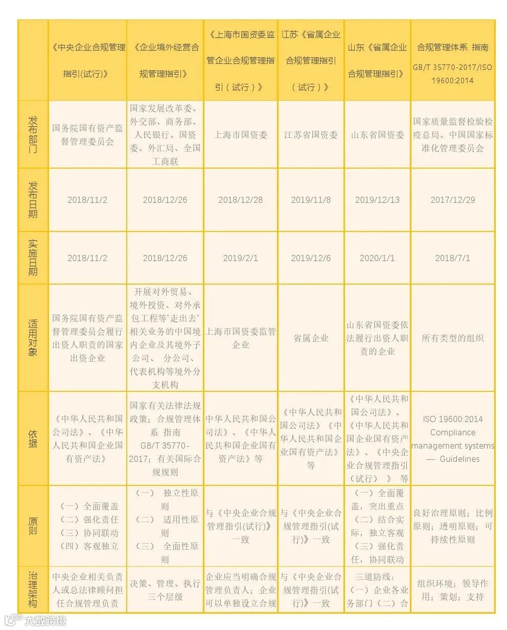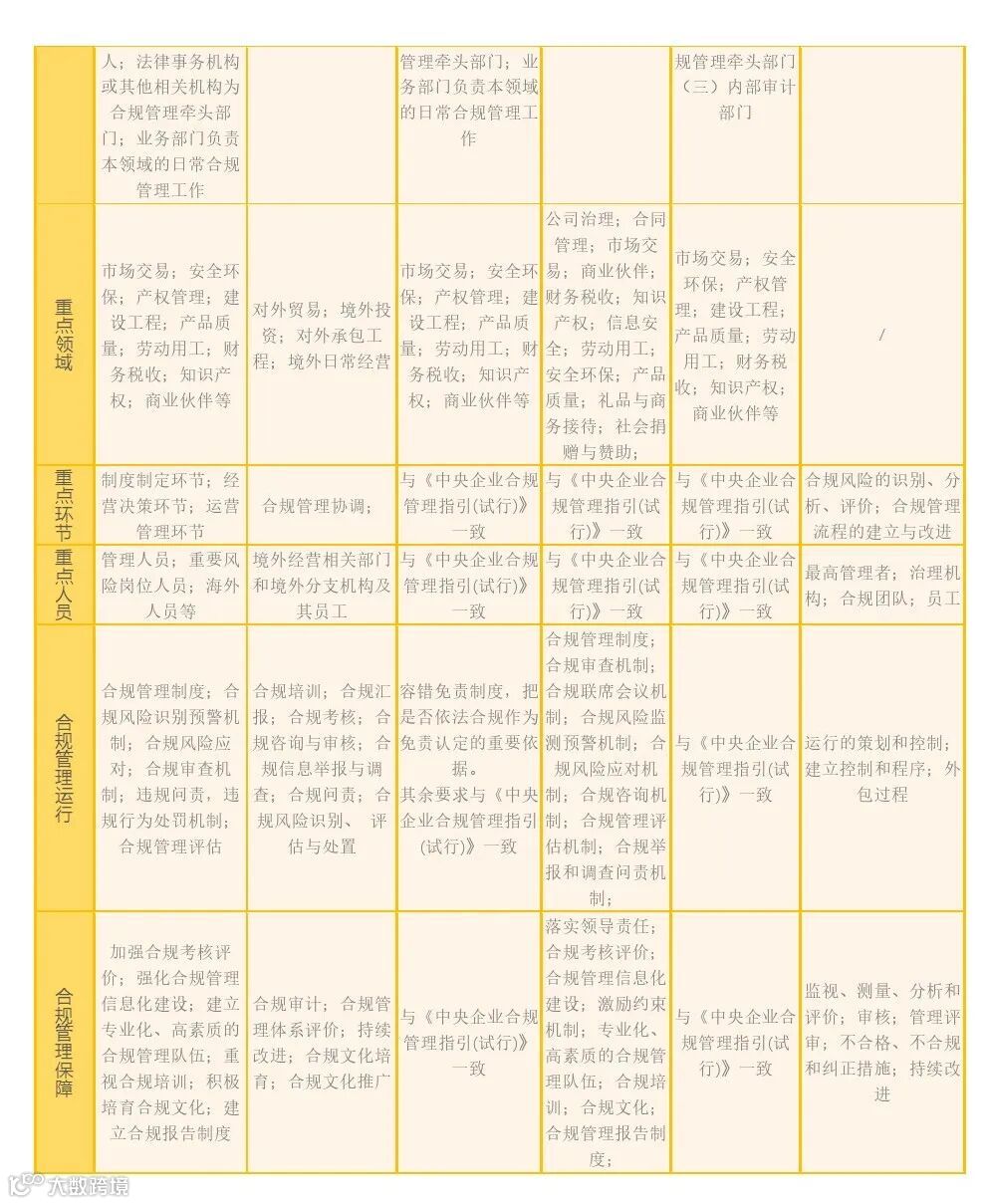 本图将帮助您快速了解当前我国企业合规指引类法规的基本内容及其异同。