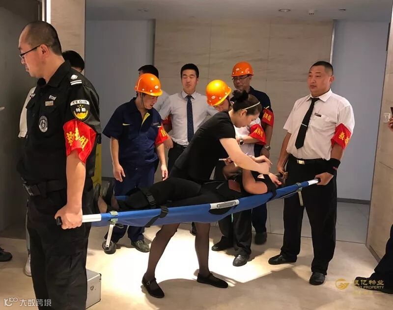 扮演被困人员来到预定地点乘坐电梯,电梯在快到达四楼的时候突然骤停,人员被困电梯轿厢内。被困后,扮演被困人员拨通电梯救援电话联系消控中心,同时消控中心值班人员通过监控锁定被困楼层,迅速通知维修人员。不一会儿,设备保障组、现场救援组赶到事发地点,解救被困人员,并将被困人员救至安全地点。