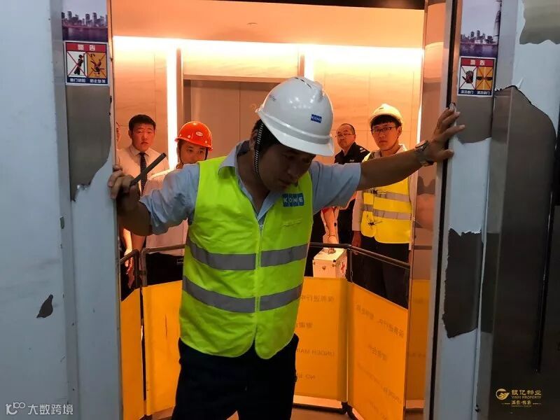此次演习共分为两个部分,首先是电梯困人演习。29日上午8点30分,所有演习人员和观摩人员来到银亿东岸国际A座电梯旁,进行电梯困人演习。