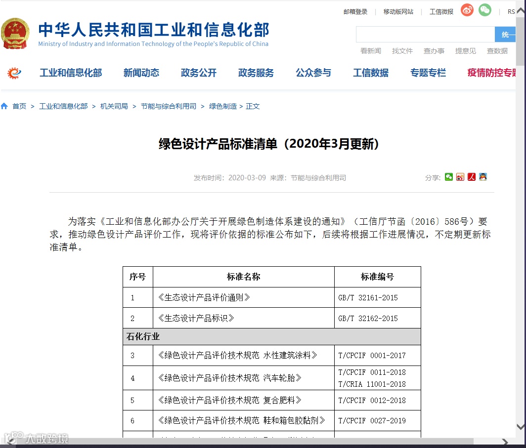 2020年2月24日,工业和信息化部办公厅发布了《关于开展第五批绿色制造名单推荐及前两批名单复核工作的通知》(工信厅节函〔2020〕30号,以下简称《通知》)。
