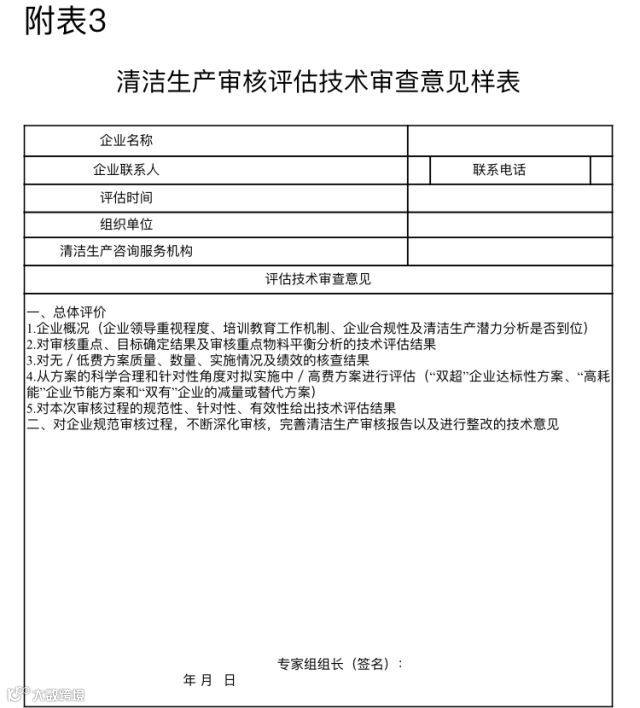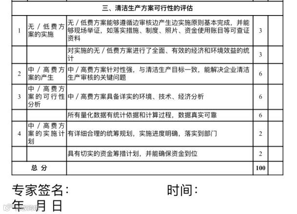 技术审查意见参照《清洁生产审核评估技术审查意见样表》(见附表3)内容进行评述,提出清洁生产审核中尚存的问题,对清洁生产中/高费方案的可行性给出意见。