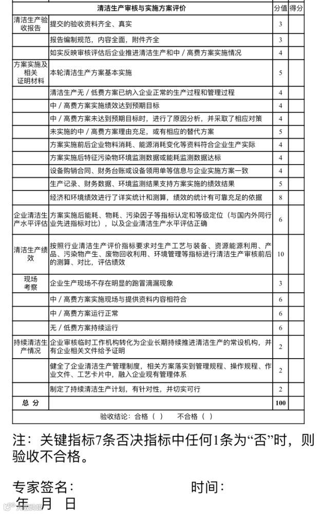 本指南所称清洁生产审核验收是指按照一定程序,在企业实施完成清洁生产中/高费方案后,对已实施清洁生产方案的绩效、清洁生产目标的实现情况及企业清洁生产水平进行综合性评定,并做出结论性意见的过程。