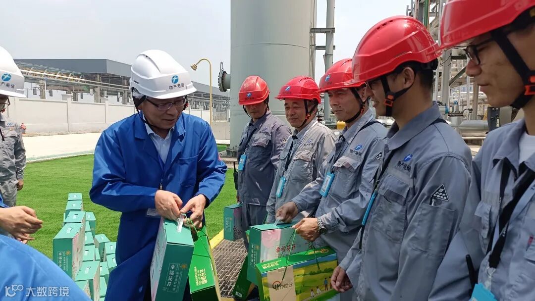 8月11日上午,物产中大集团党委委员、副总裁李刚一行冒着酷暑莅临物产港储进行安全检查,看望慰问坚守岗位的一线生产员工,并送上清凉用品,带去集团的关怀。物产中大集团实业部、安全生产部总经理黄铁飞,投资部汪俊涵,党群部王泽鹏,物产中大化工党委副书记、工会主席时贞仑,实业部、安全生产部责任人王艳斌、经理助理汤晴等相关人员陪同。
