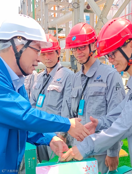 李总一行深入生产库区和充装台,为奋战在一线的员工送上慰问用品,对他们在高温天气下,坚守岗位、辛勤付出表示由衷的感谢,并叮嘱大家在做好本职工作的同时一定要做好防暑降温工作,合理调配作业时间,确保自身健康安全。