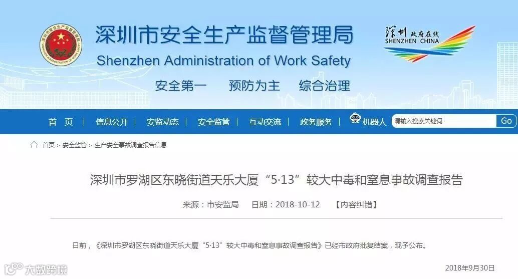 日前,该起事故的调查报告已公布,调查认定,深圳市罗湖区东晓街道天乐大厦“5·13”较大中毒和窒息事故是一起生产安全责任事故。