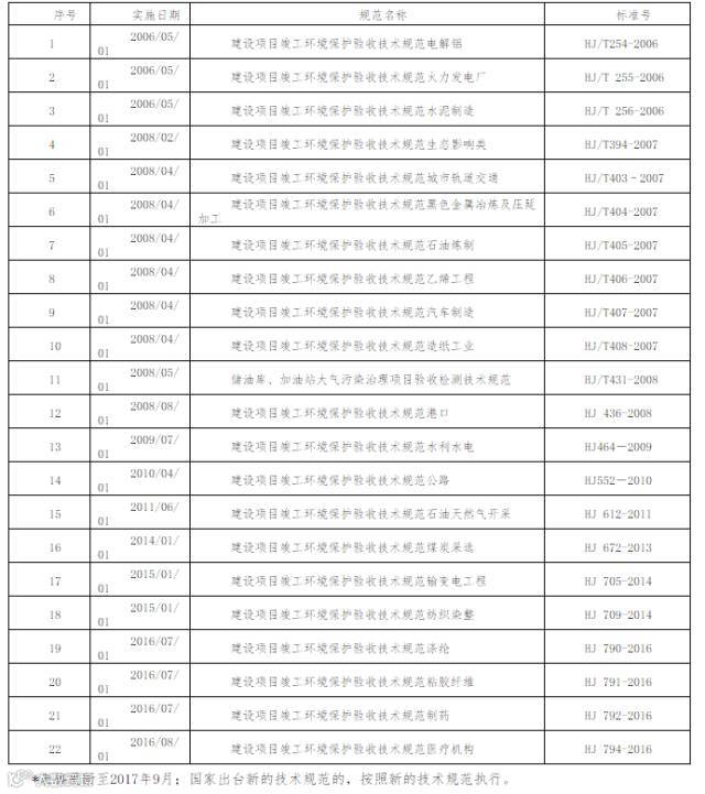 国家现行建设项目环境保护设施验收技术规范参考目录