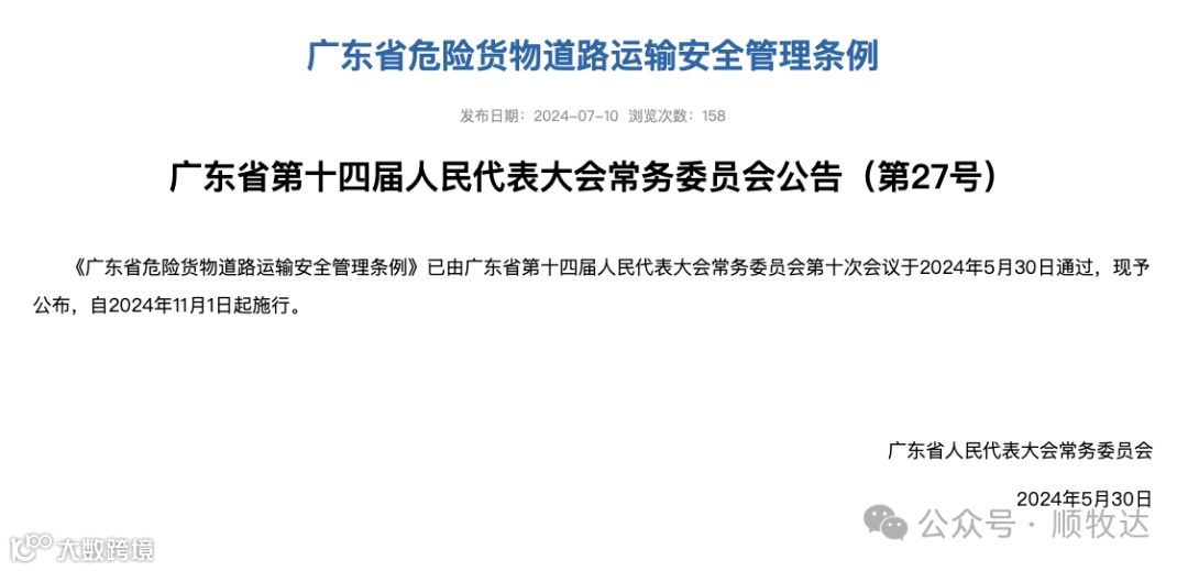 《广东省危险货物道路运输安全管理条例》将于 11 月 1 日正式落地实施。条例明确禁止危险货物运输车辆挂靠经营,要求危险货物道路运输企业按照统一车辆产权关系、劳动关系、运输生产组织、财务管理和安全管理等要求,加强对人员、车辆等的管理。