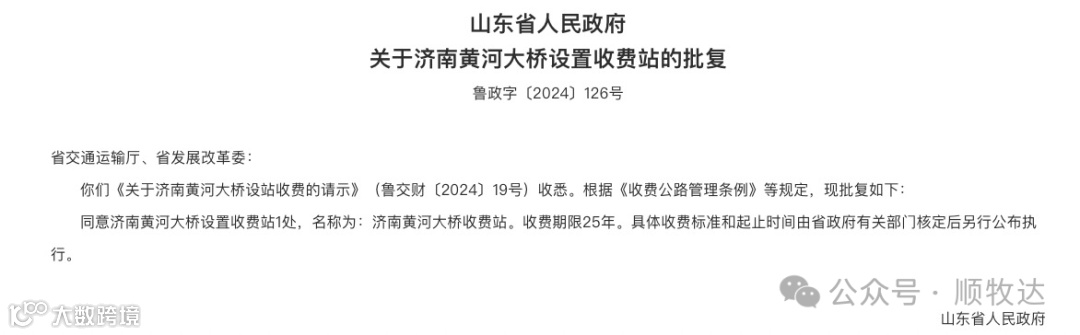 山东省政府网站发布批复,同意济南黄河大桥设置收费站,收费期限长达 25 年,不过具体收费标准和起止时间将由省政府有关部门核定后另行公布。如果有卡友经常往返济南黄河大桥,可持续关注后续公布的收费信息,以便提前做好运输成本的核算和路线规划。