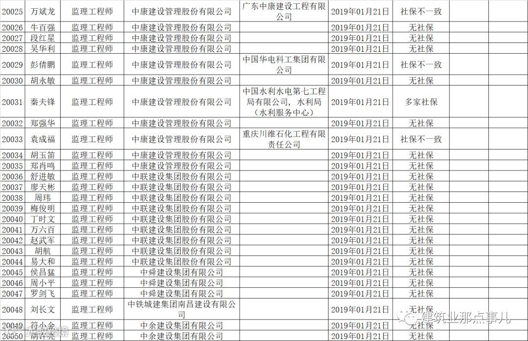 这个名单涉及到一、二级建造师、监理工程师注册人员,问题为:多家社保、社保不一致和无社保。而名单直接公布的注册人员共有20050人。没错,小编没多打一个零,是两万多人。
