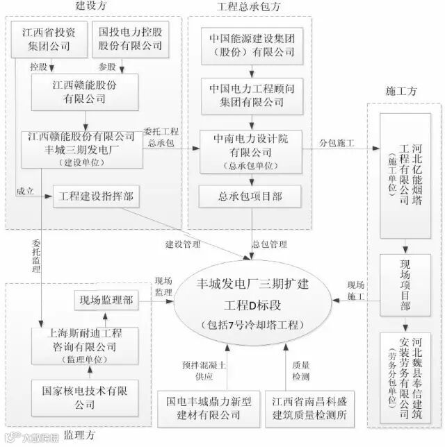 1.工程建设方。江西赣能股份有限公司丰城三期发电厂(以下简称丰城三期发电厂)为项目的法定建设单位,是江西赣能股份有限公司(以下简称江西赣能股份公司)的子公司,江西赣能股份公司控股股东为江西省投资集团公司(以下简称江西投资集团)。