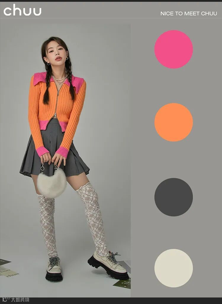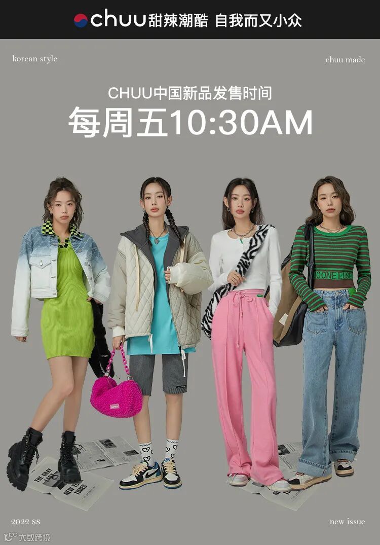 chuu,韩国本土网红潮流时尚品牌。2012年创立于韩国首尔。甜辣,轻运动,高调张扬的自我穿搭方式。