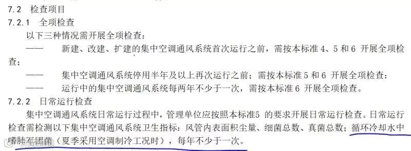 Q:空调冷水的军团菌是否要每年检测?有没有法规要求?
