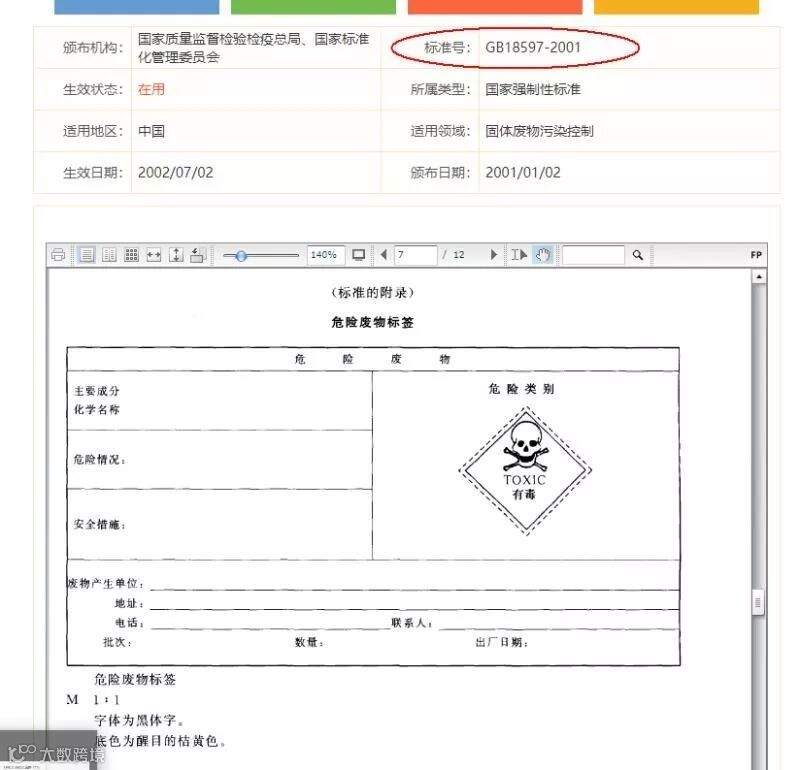 A:危险废物贮存污染控制标准的附录中有规定标签样式,颜色和字体,购买标准品的时候,要和标准核对一下。
