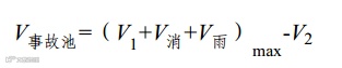 应急事故废水池容量=应急事故废水最大计算量-装置或罐区围堤内净空容量-事故废水管道容量