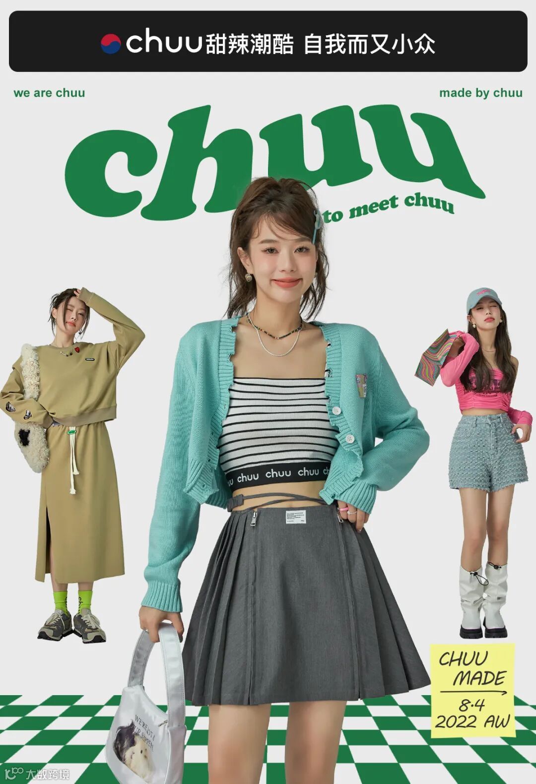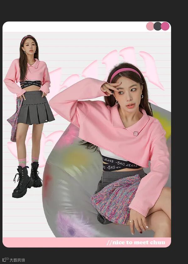 chuu,韩国本土网红潮流时尚品牌。2012年创立于韩国首尔。甜辣,轻运动,高调张扬的自我穿搭方式。