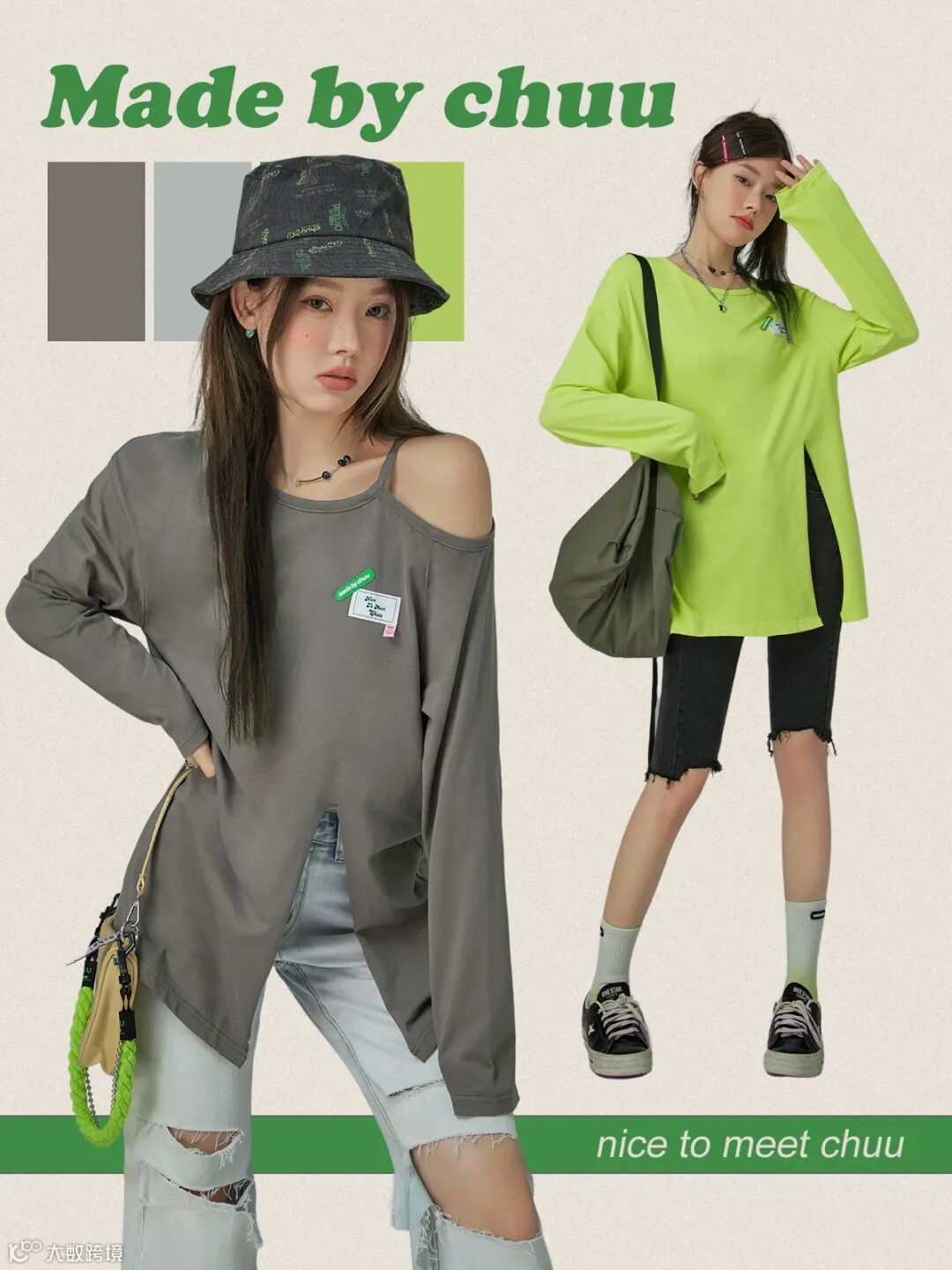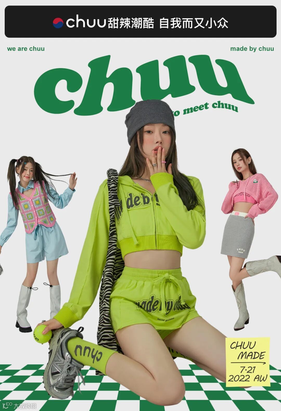 chuu,韩国本土网红潮流时尚品牌。2012年创立于韩国首尔。甜辣,轻运动,高调张扬的自我穿搭方式。