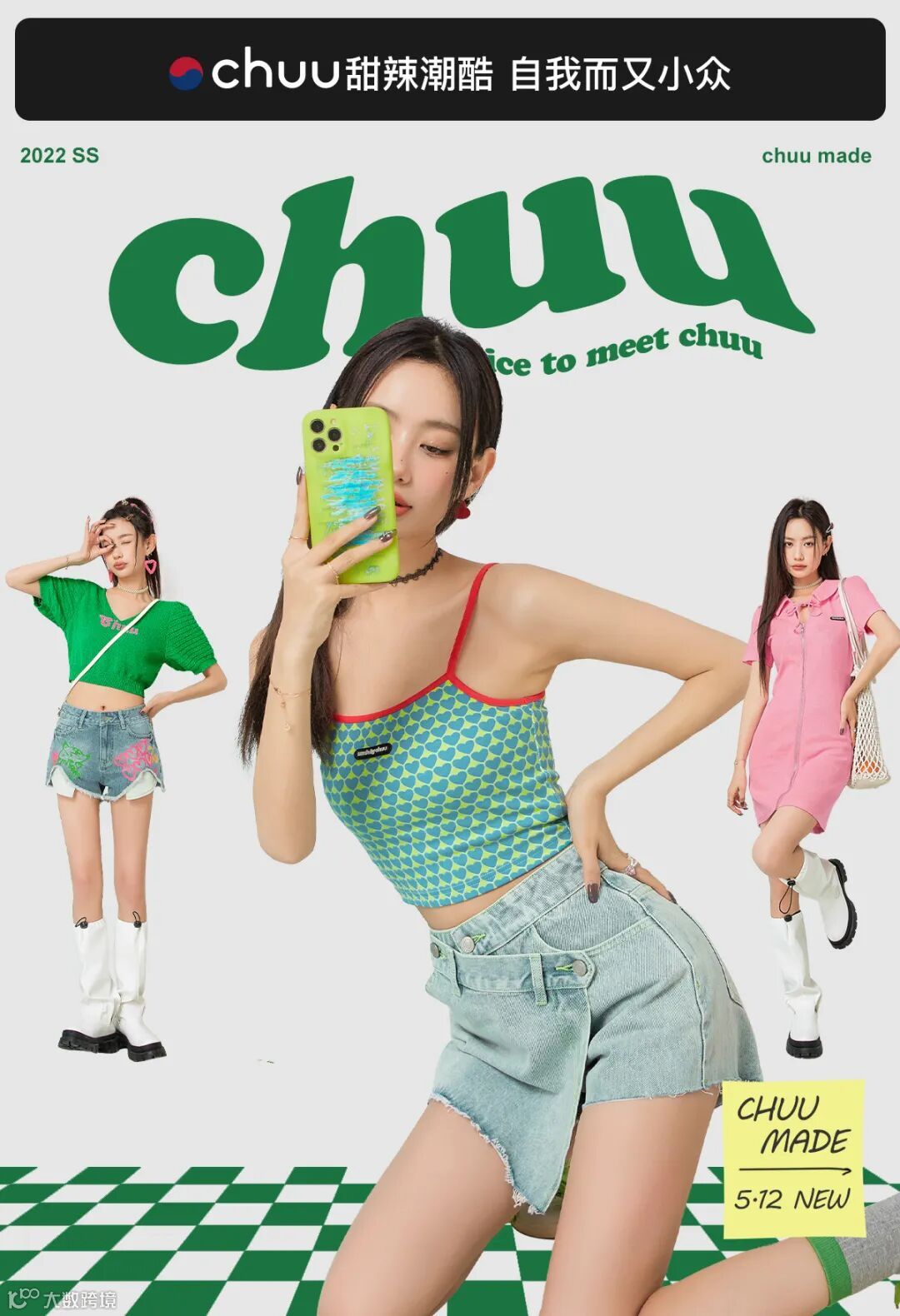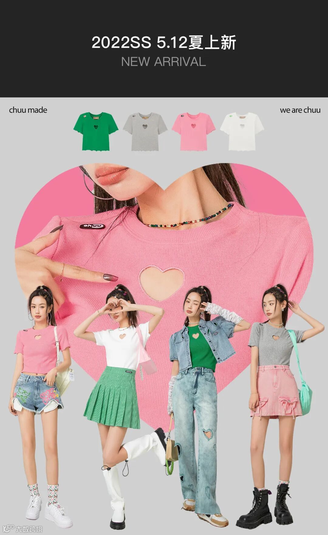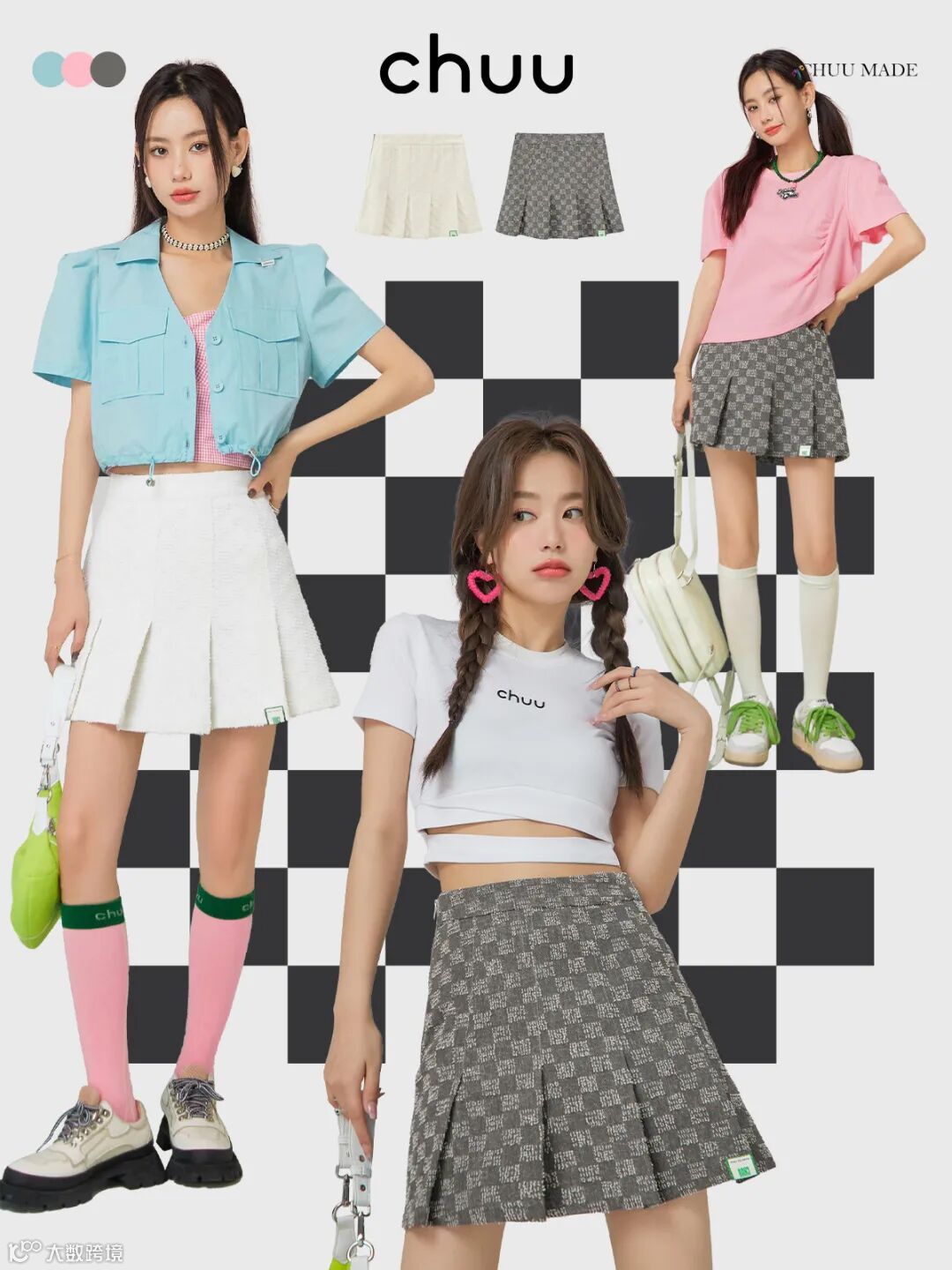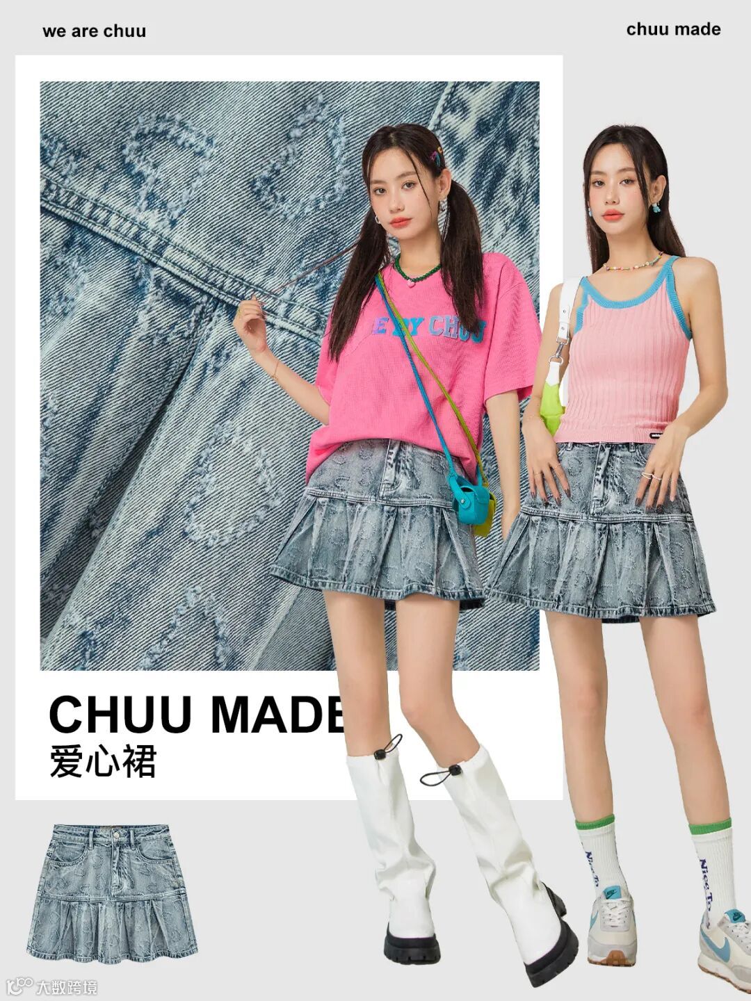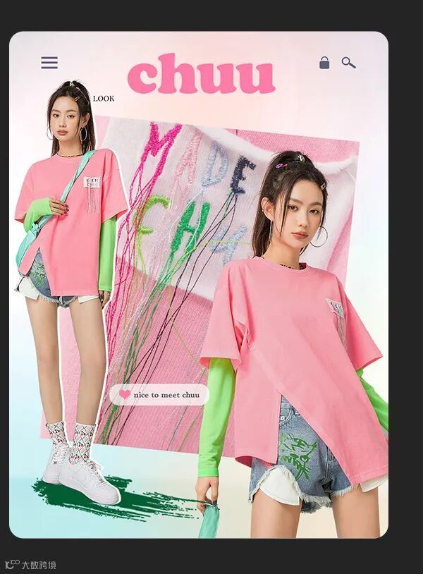 chuu,韩国本土网红潮流时尚品牌。2012年创立于韩国首尔。甜辣,轻运动,高调张扬的自我穿搭方式。