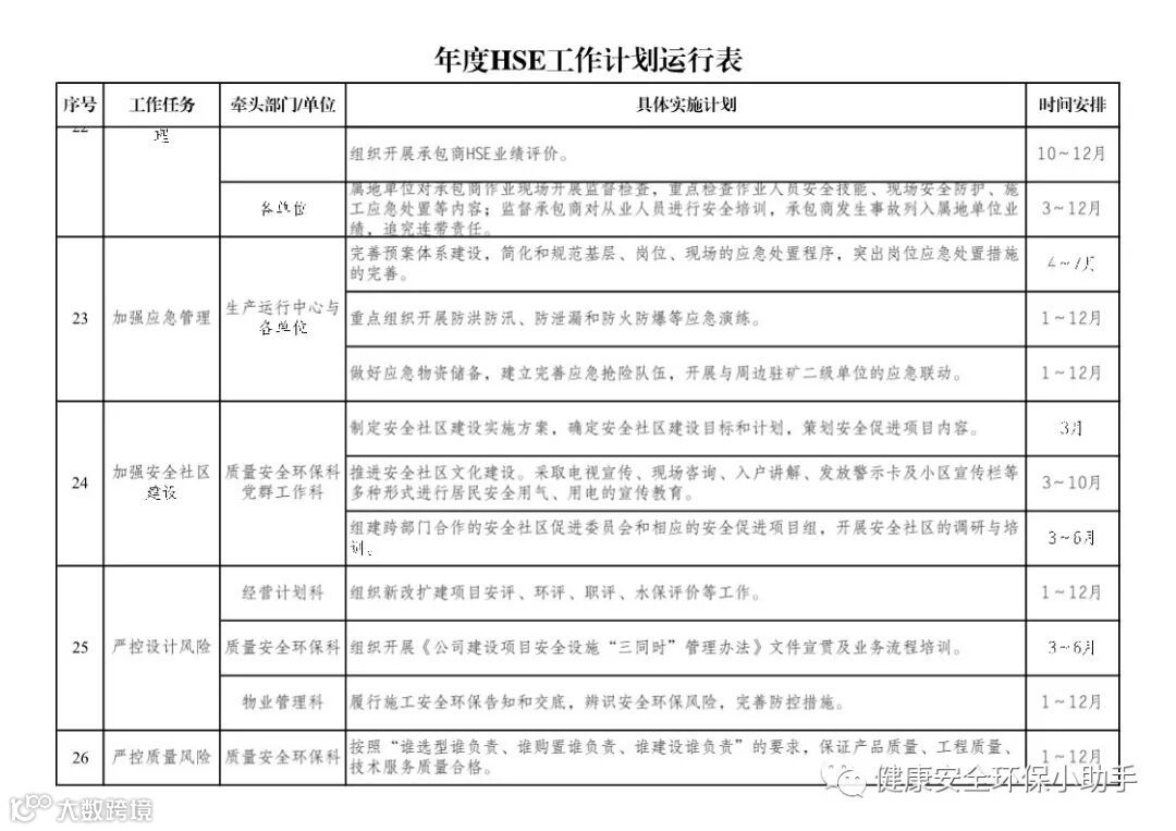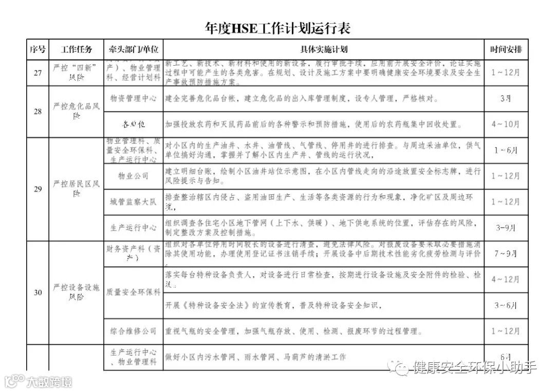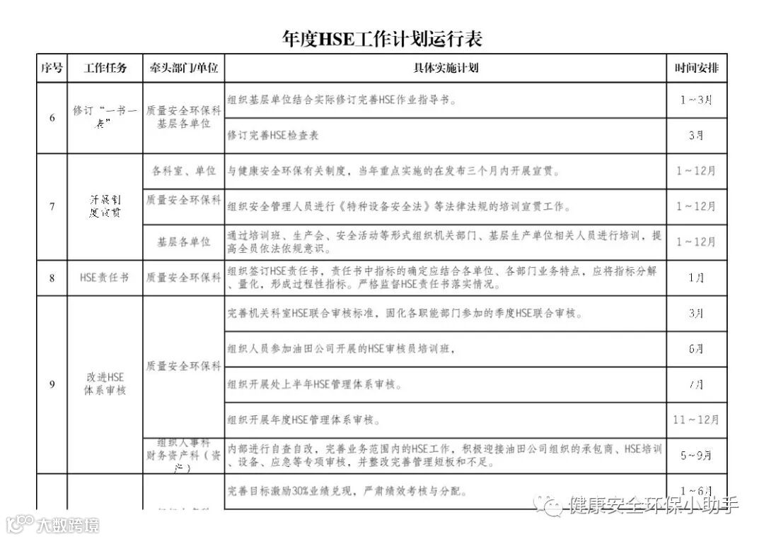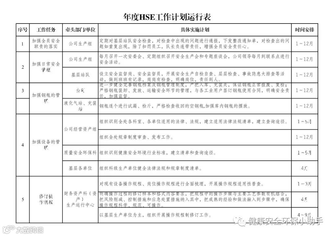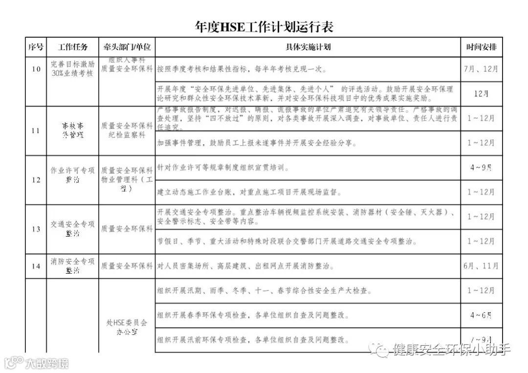 国企版:年度HSE工作计划表
