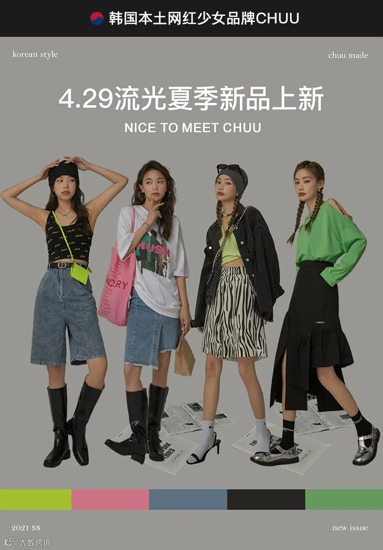 chuu,韩国本土网红潮流时尚品牌。2012年创立于韩国首尔。甜辣,轻运动,高调张扬的自我穿搭方式。