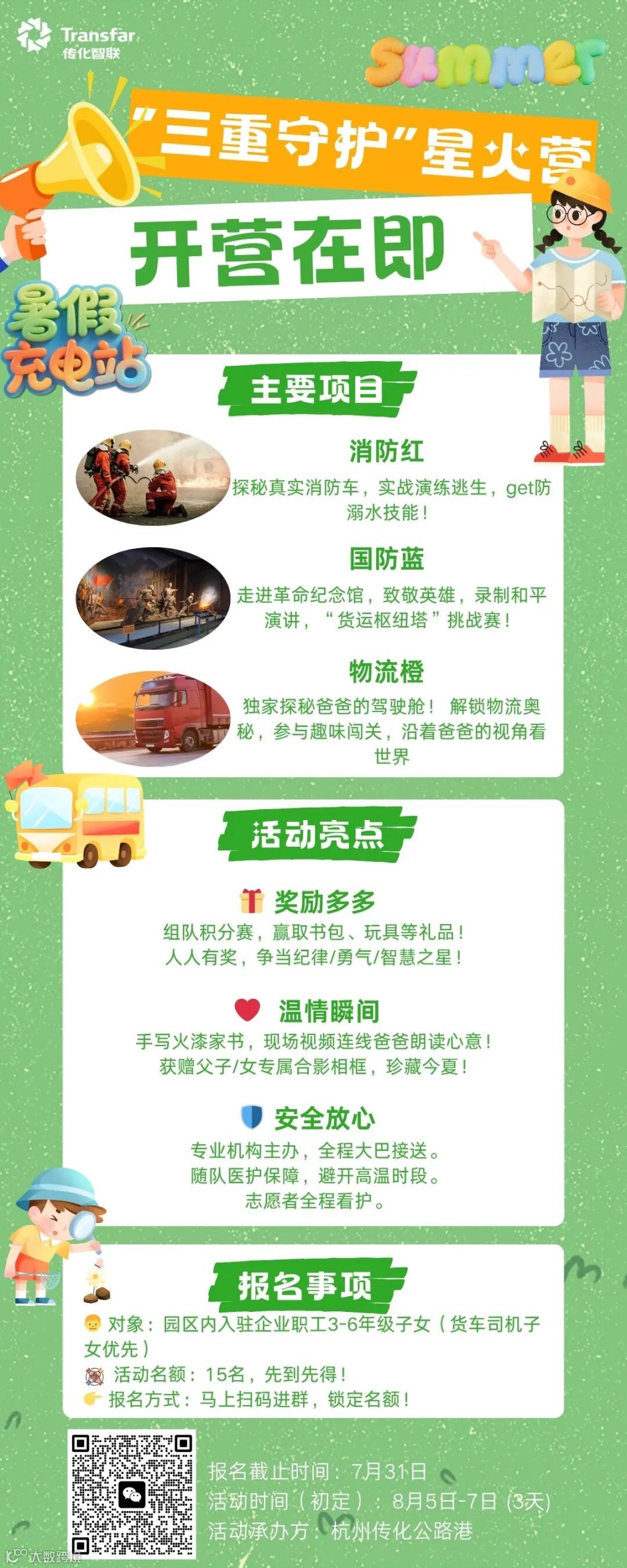 4、活动中收集的学员及家长相关身份信息仅于作本次夏令营保险购买,杭州传化公路港将严格保密不向无关方泄露学员信息。