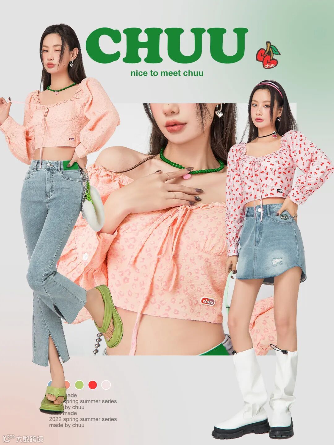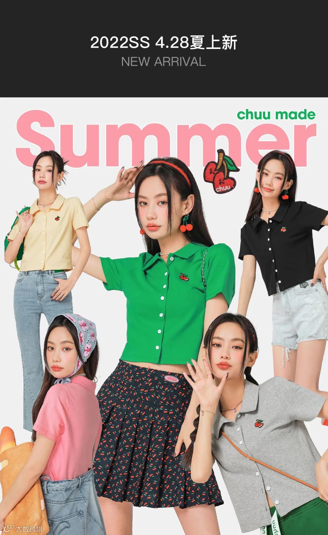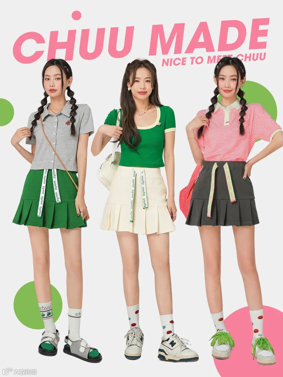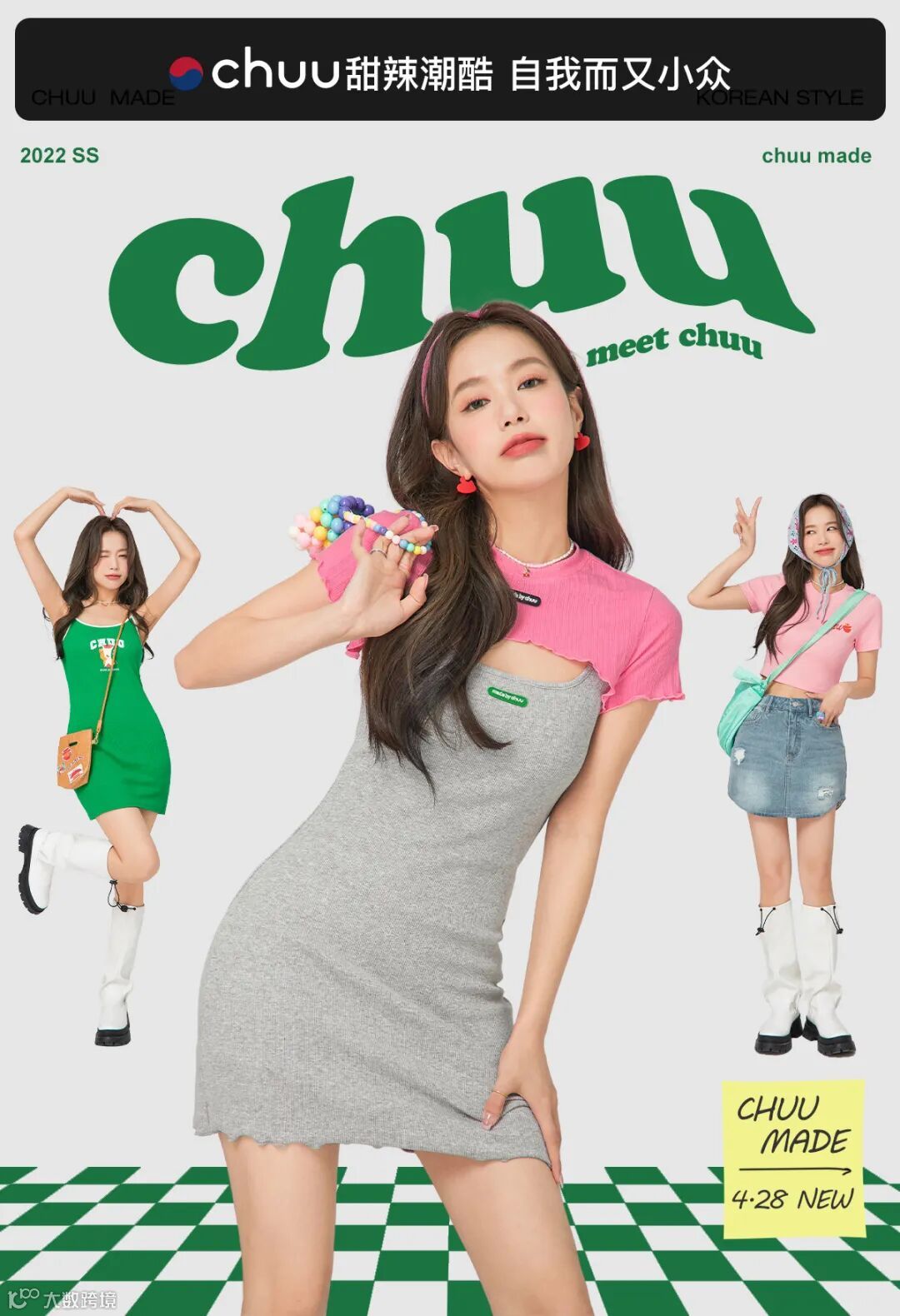 chuu,韩国本土网红潮流时尚品牌。2012年创立于韩国首尔。甜辣,轻运动,高调张扬的自我穿搭方式。