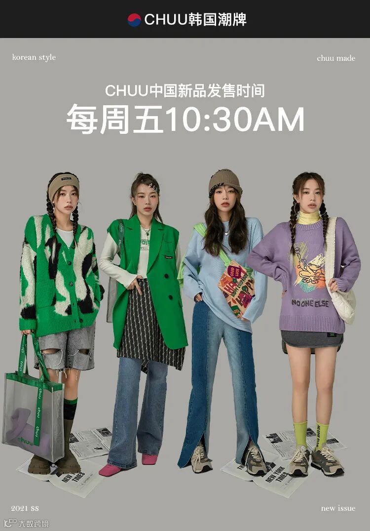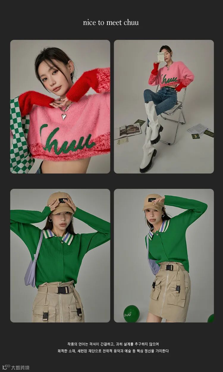 chuu,韩国本土网红潮流时尚品牌。2012年创立于韩国首尔。甜辣,轻运动,高调张扬的自我穿搭方式。
