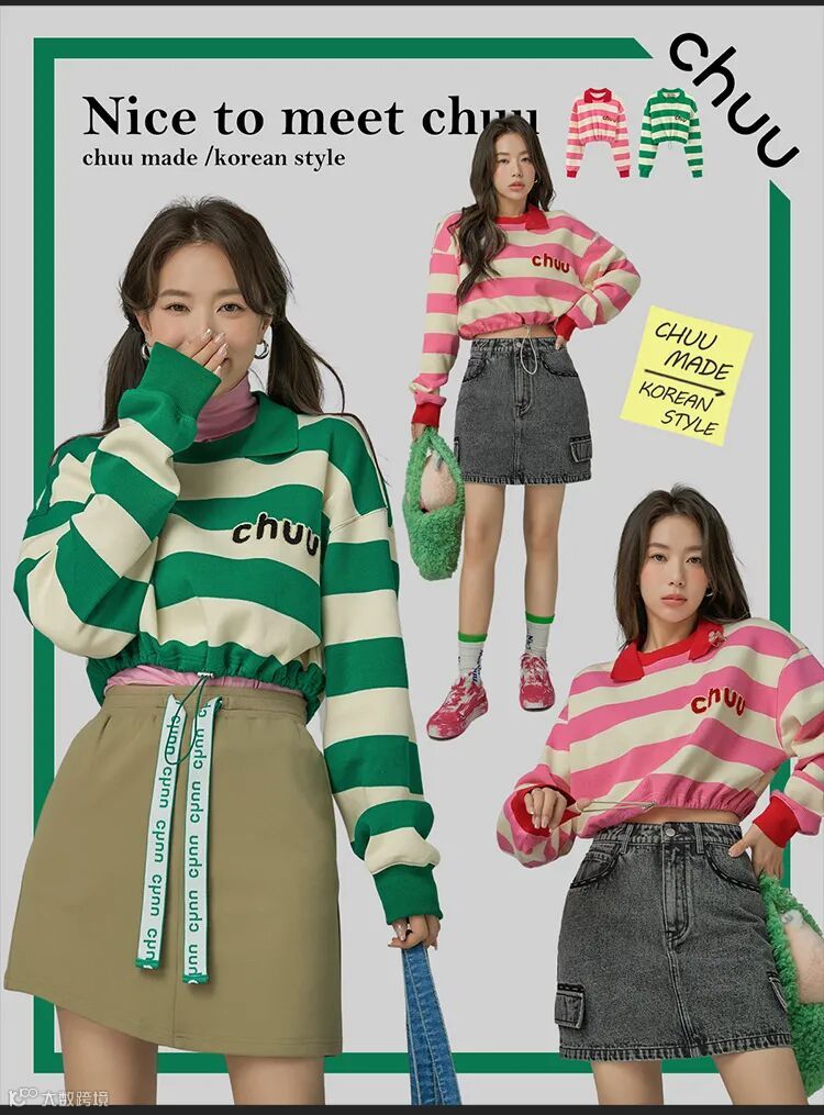 chuu,韩国本土网红潮流时尚品牌。2012年创立于韩国首尔。甜辣,轻运动,高调张扬的自我穿搭方式。