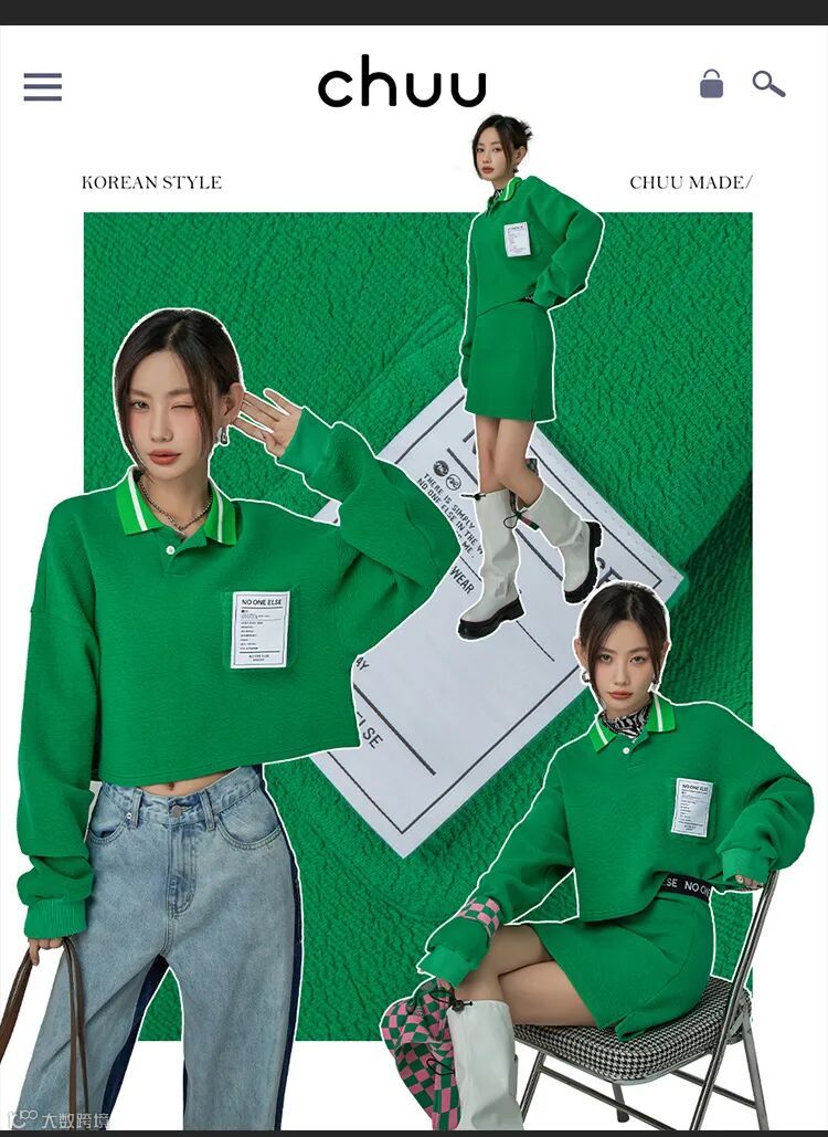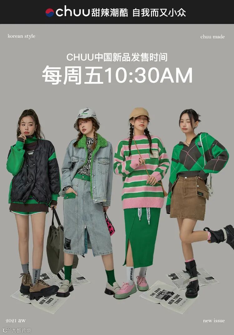 chuu,韩国本土网红潮流时尚品牌。2012年创立于韩国首尔。甜辣,轻运动,高调张扬的自我穿搭方式。
