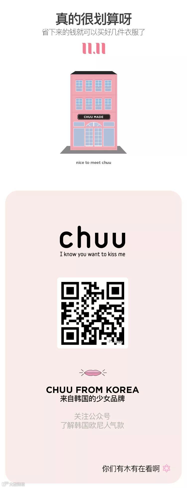 chuu,韩国本土网红潮流时尚品牌。2012年创立于韩国首尔。甜辣,轻运动,高调张扬的自我穿搭方式。