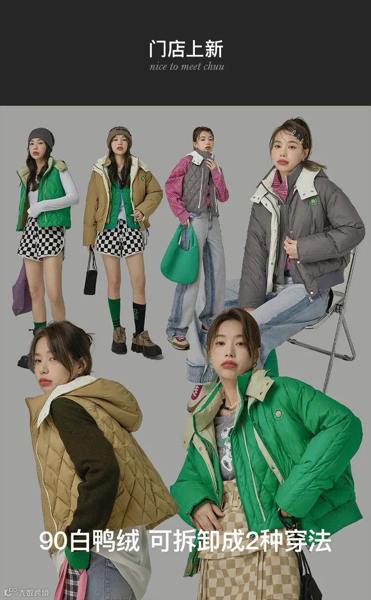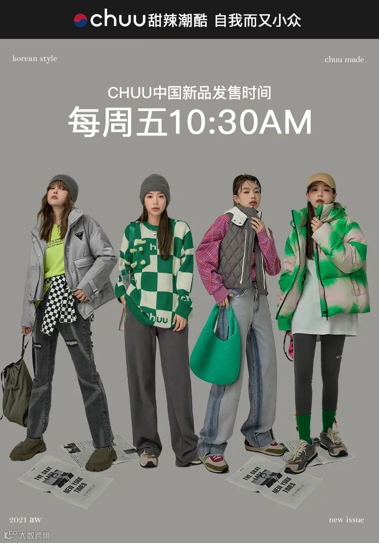 chuu,韩国本土网红潮流时尚品牌。2012年创立于韩国首尔。甜辣,轻运动,高调张扬的自我穿搭方式。