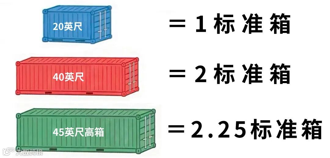 一般来说,一个20英尺长的标准集装箱记为1个标准箱,40英尺集装箱计为2个标准箱。