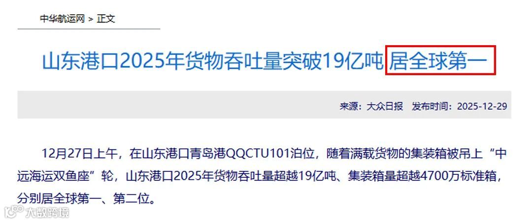 山东港口的第一,是以港口运营主体为统计对象,包含了山东港口集团投资运营管理的多个港口的吞吐量。