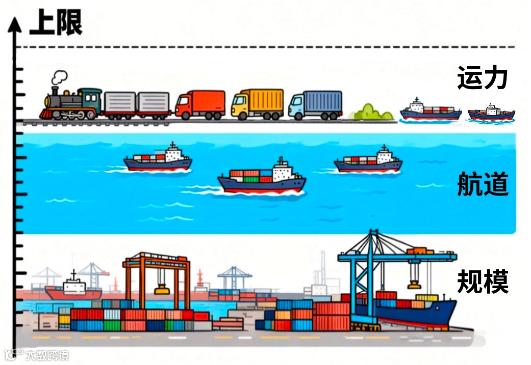 港口的吞吐量上限受制于航道水深、码头岸线、集疏运能力等,所以港口需要通过码头升级扩容、物流通道拓展等方式提高“上限值”。宁波舟山港从上世纪处于入海口的地方小港,成长为如今拥有绵延海岸线的全球大港,正是其向海蓬勃生长的结果。