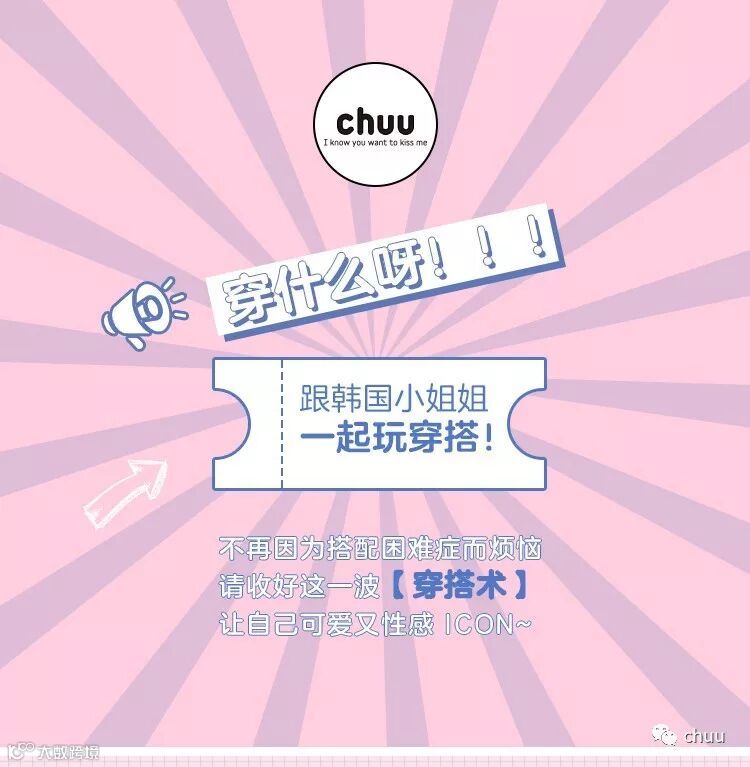 chuu,韩国本土网红潮流时尚品牌。2012年创立于韩国首尔。甜辣,轻运动,高调张扬的自我穿搭方式。